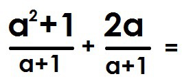 displaystyle  frac{a^{2}+1}{a+1} + frac{2a}{a+1}= frac{a^{2}+2a+1}{a+1}= frac{(a+1)^{2}}{a+1}=a+1;