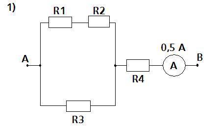 Определите общее сопротивление цепи и напряжение на концах участка AB, если R1 = 4 Ом, R2 = 6 Ом, R3 = 15 Ом, R4 = 4Ом. I=0,5 Найти R-?,U-?,P1,P2,P3,P4-?