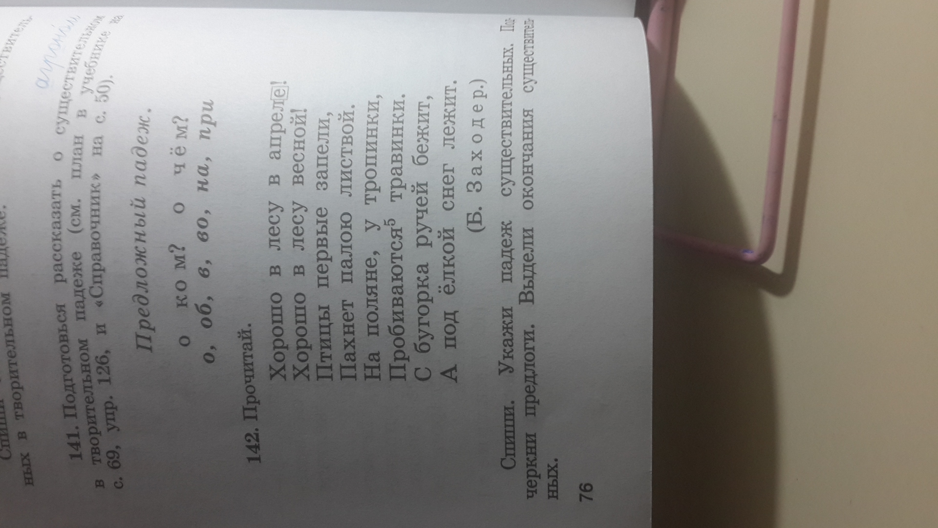 Упр 142 . Укажи падеж существительных. Подчеркни предлоги . Выдели окончания существительных.... 10 Баллов............