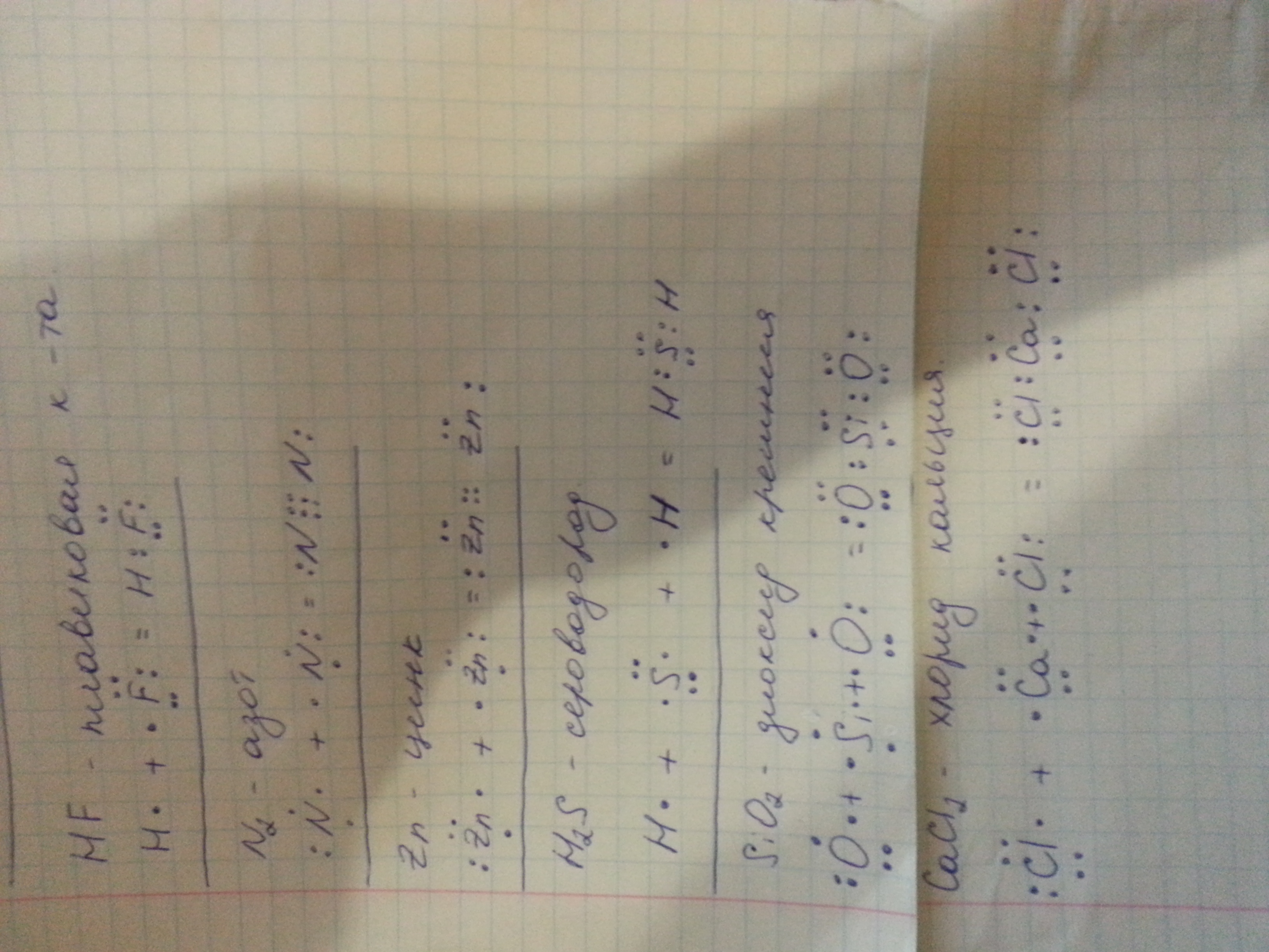 Схемы образования связей в молекулах плавиковой кислоты, азота, цинка, сероводорода, диоксида кремния и хлорида кальция