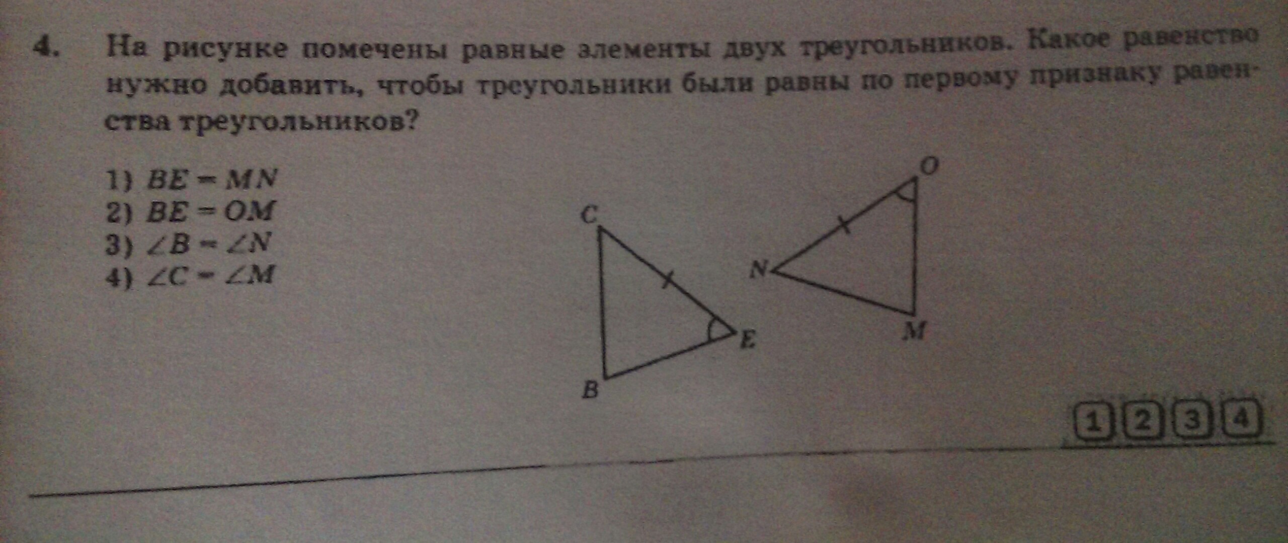 ответ номер 2, потому что Первый признак равенства треугольников: Если две стороны и угол между ними одного треугольника равны соответственно двум сторонам и углу между ними другого треугольника, то такие треугольники равны.