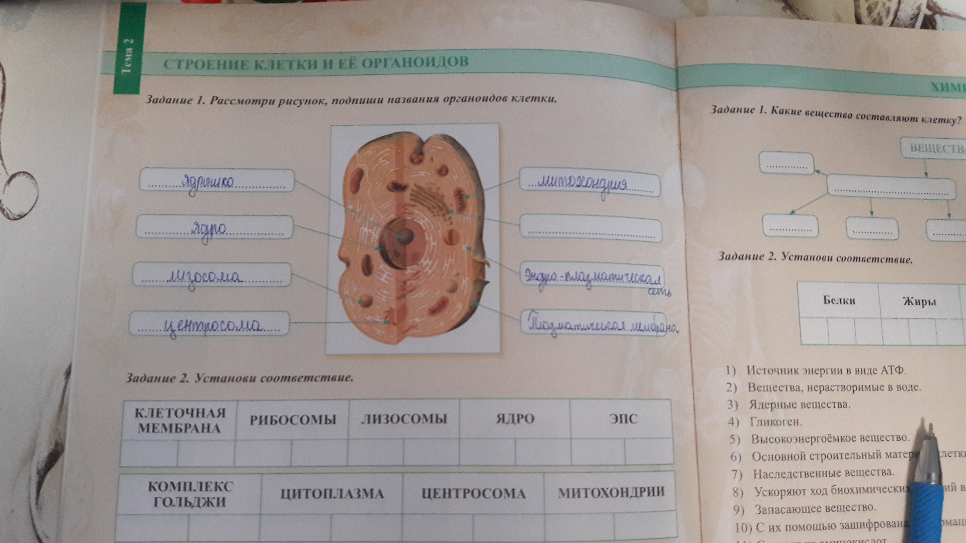 Рассмотри рисунок Подпиши названия органоидов клетки.
