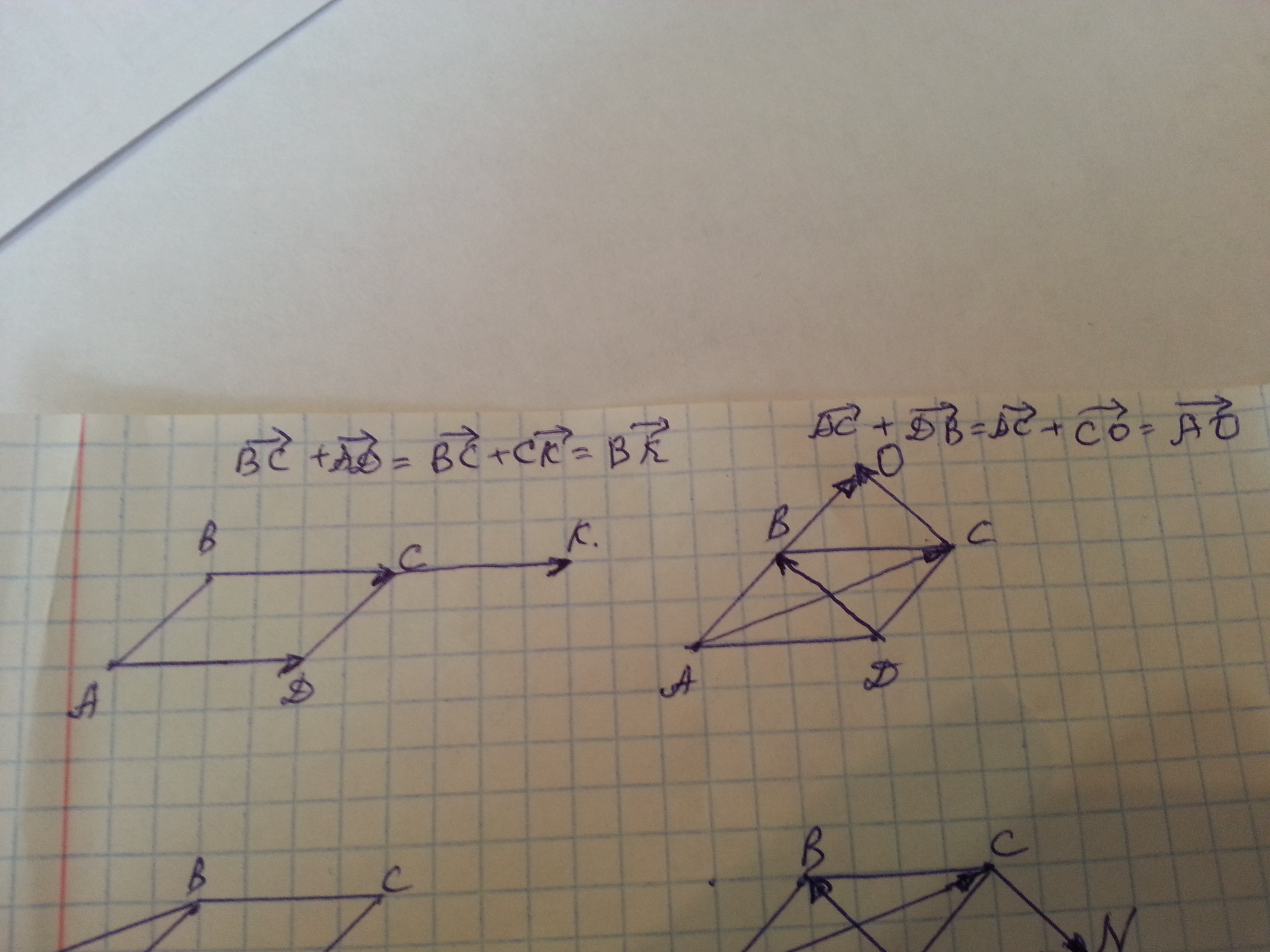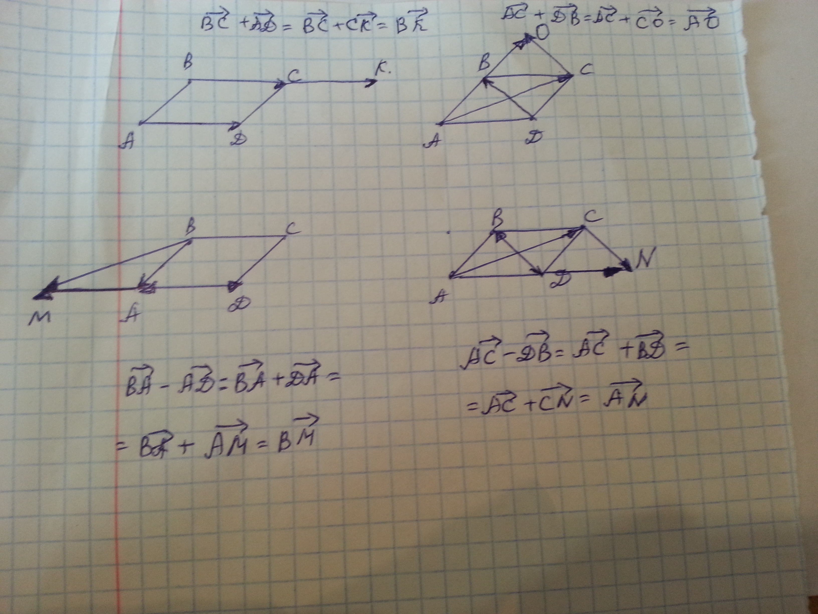 Срочно!!! Начертите параллелограмм ABCD и постройте векторы BC+AD, AC+DB, BA-AD, AC-DB. Срочно!!! 9 класс
