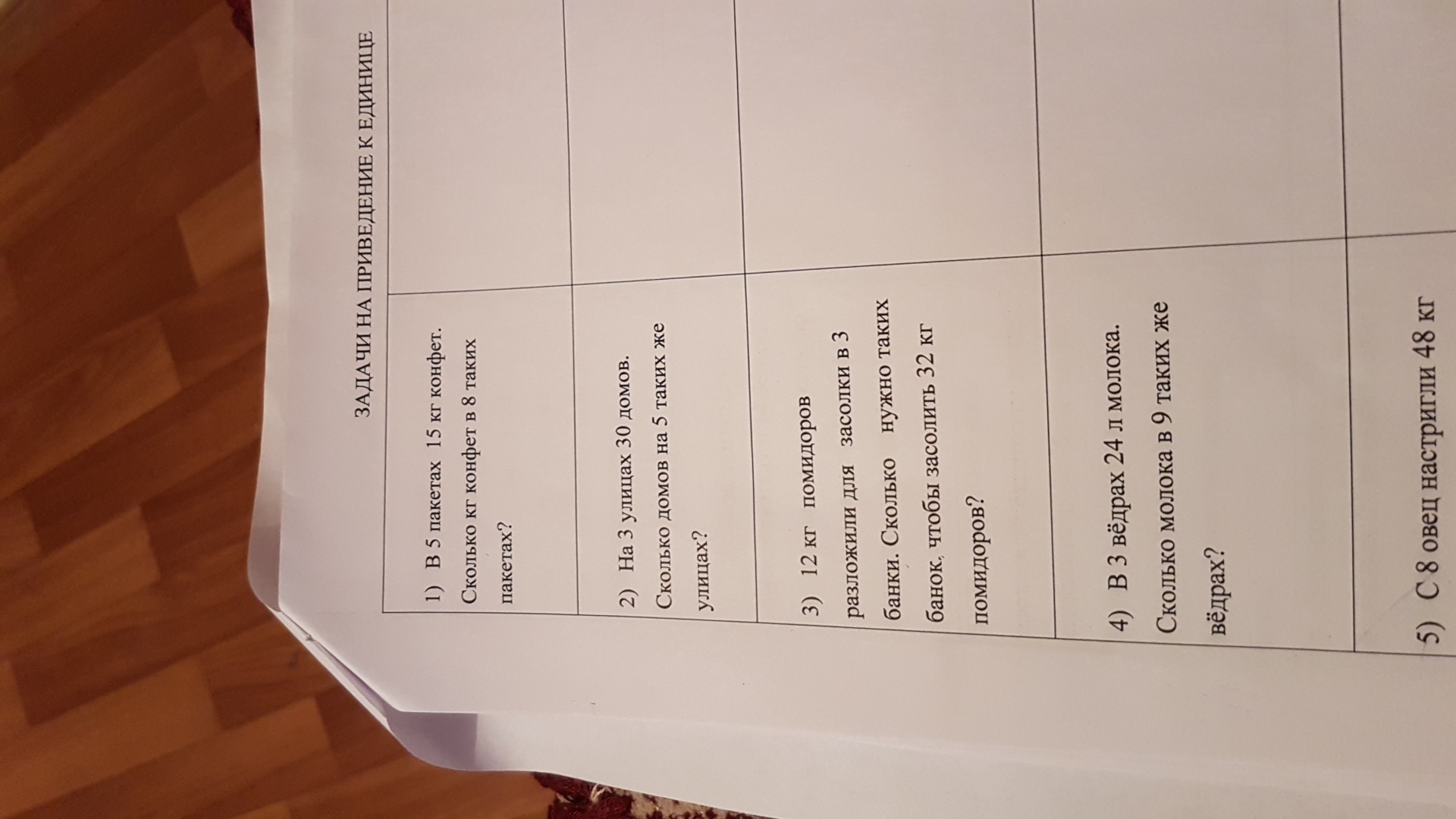 в первой задаче надо 15 разделить на 5 и умножить на 8. когда мы 15 делим на пять, то узнаем, сколько килограмм конфет в одном пакете. а когда умножаем, то находим, сколько килограмм конфет в 8 пакетах