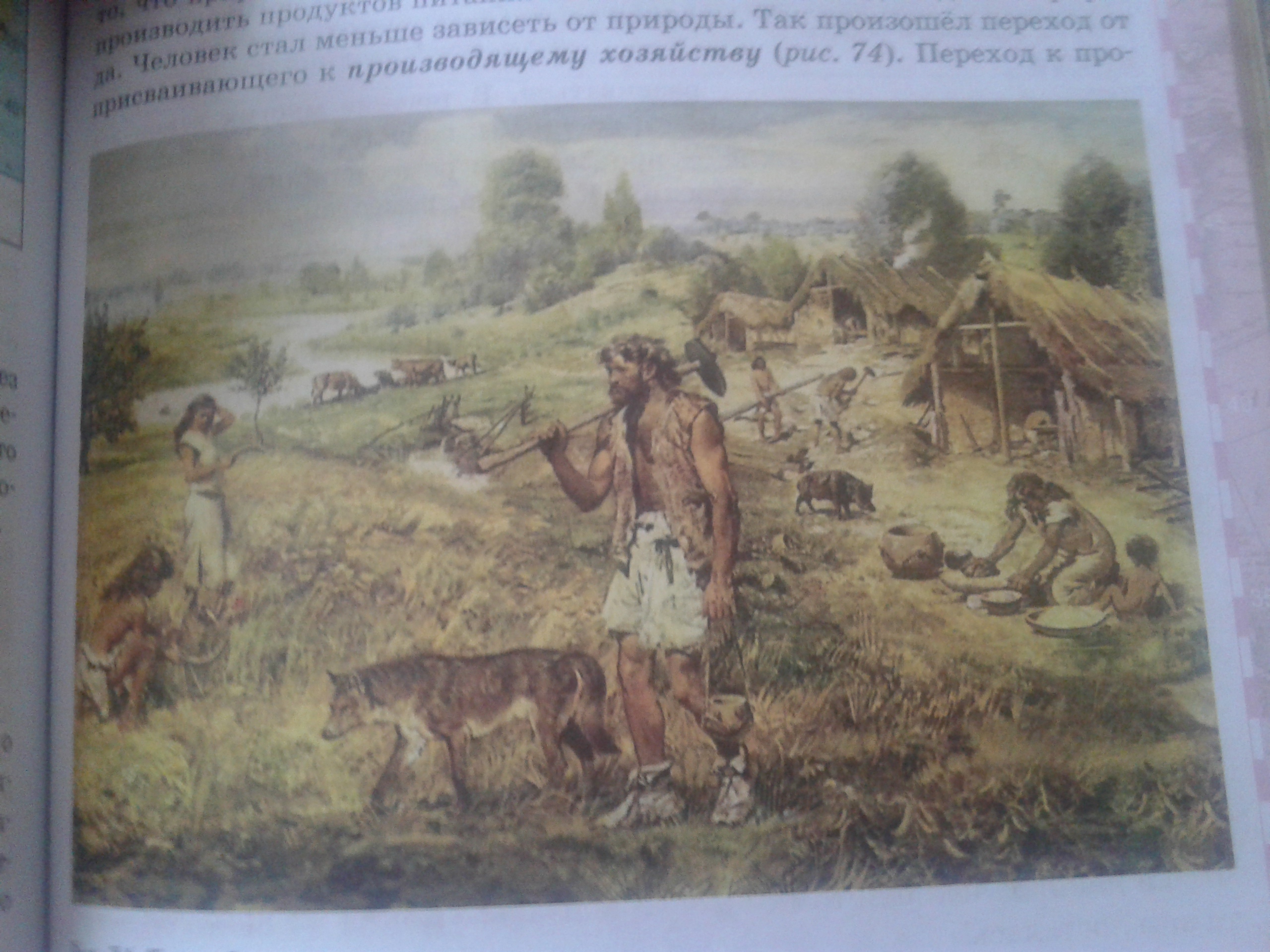 Составьте рассказ о хозяйственной деятельности древнего человека по картинке, указав на особенности природы территории.
