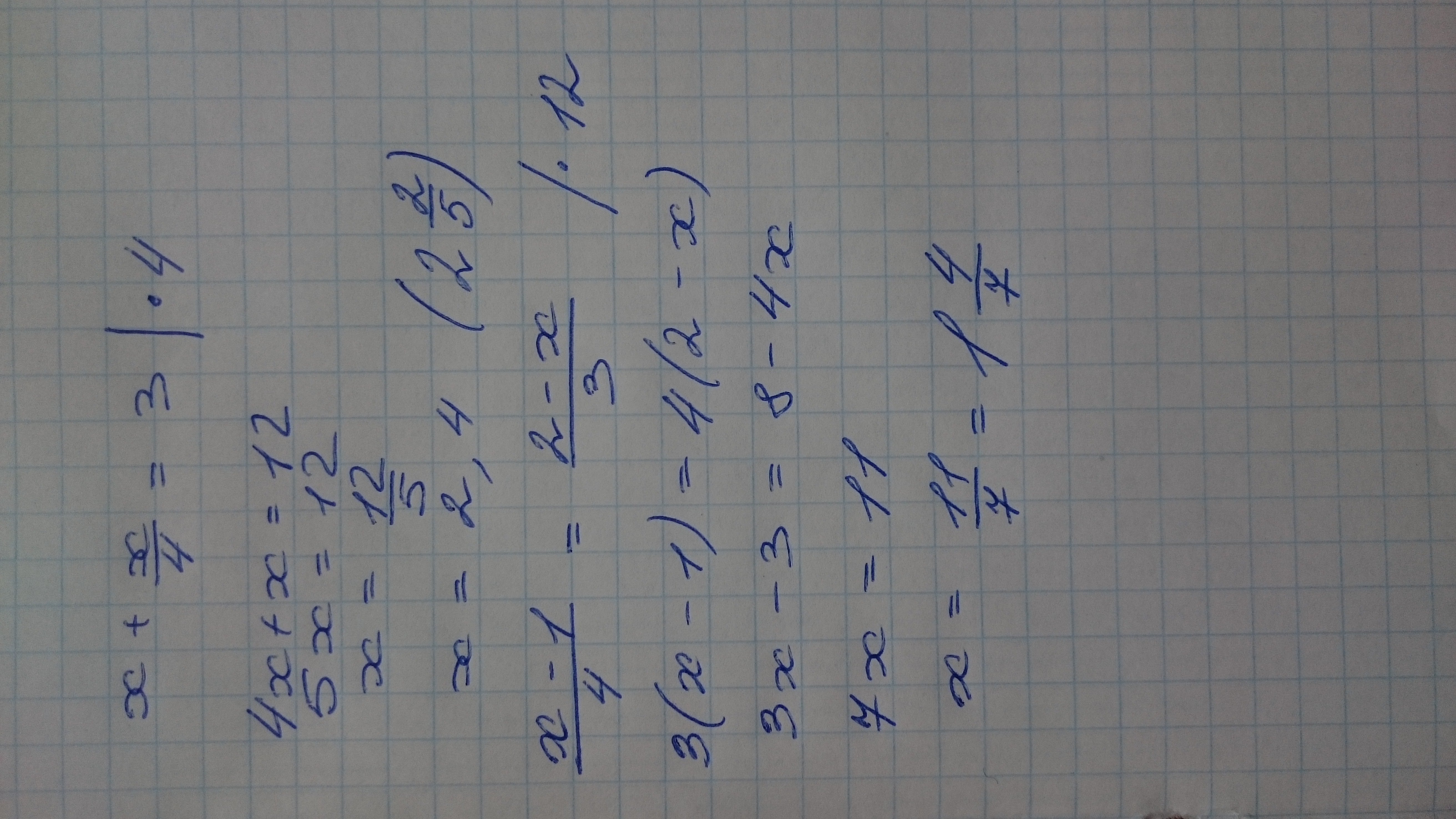 Умножаешь уравнение на знаменатель в дроби, во втором случае на кратный обоим. После переносишь складываешь делишь и получаешь ответ.
