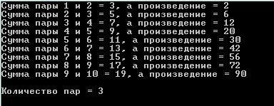 Console.WriteLine("Количество пар = " + count); //Вывод количества пар
