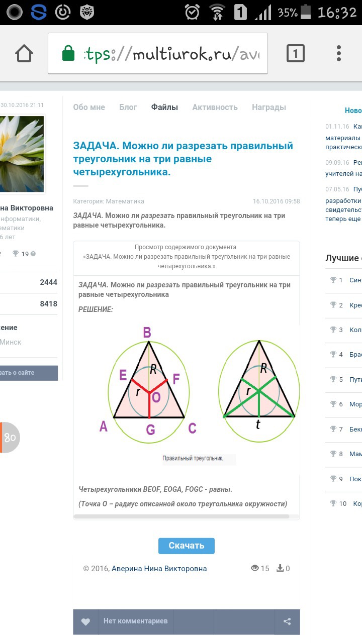 Можно ли разрезать правильный треугольник на три равных (не обязательно выпуклых) четырёхугольника?