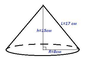 Высота h, радиус основания R и образующая конуса L - это прямоугольный треугольник. Теорема Пифагора