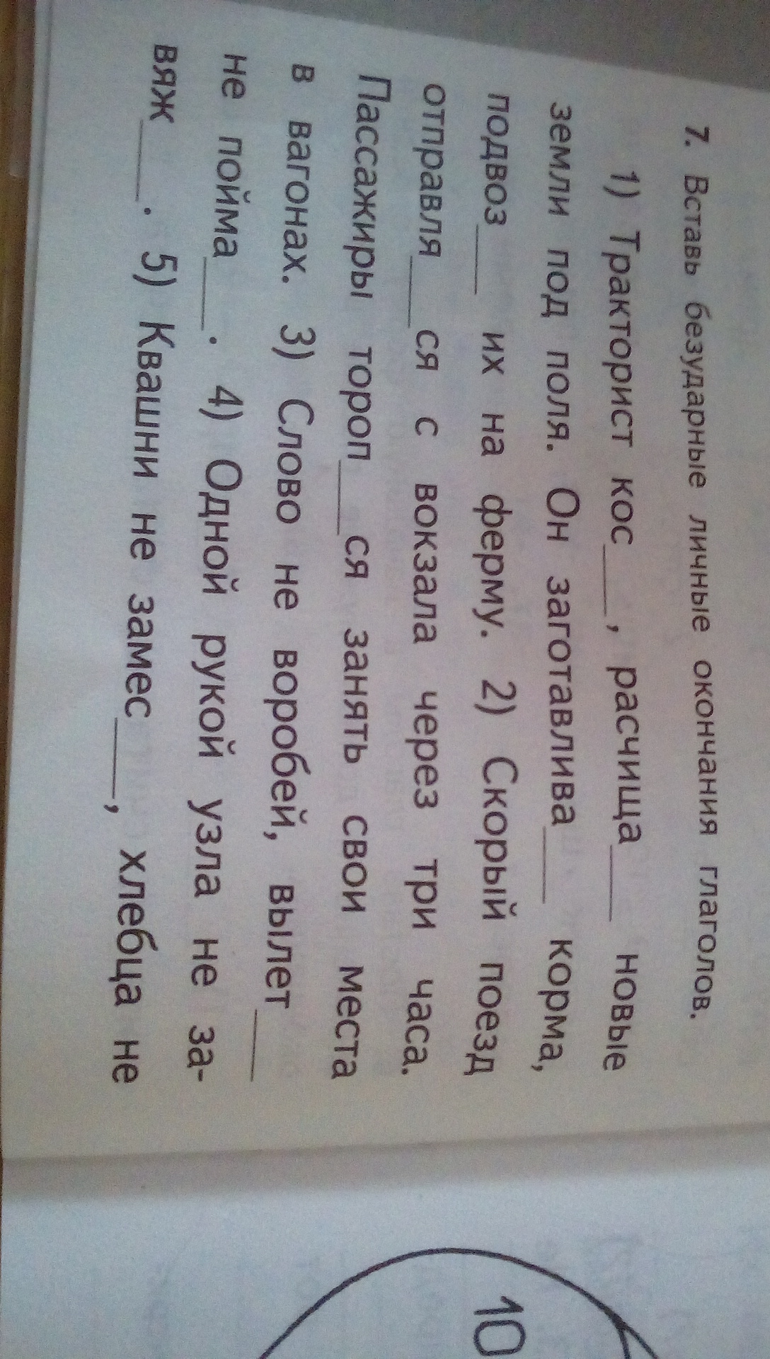 Косил, расчищал, заготавливал, подвозил, отправлялся, торопилися, вылетит, поймаешь, завяжешь, замесишь