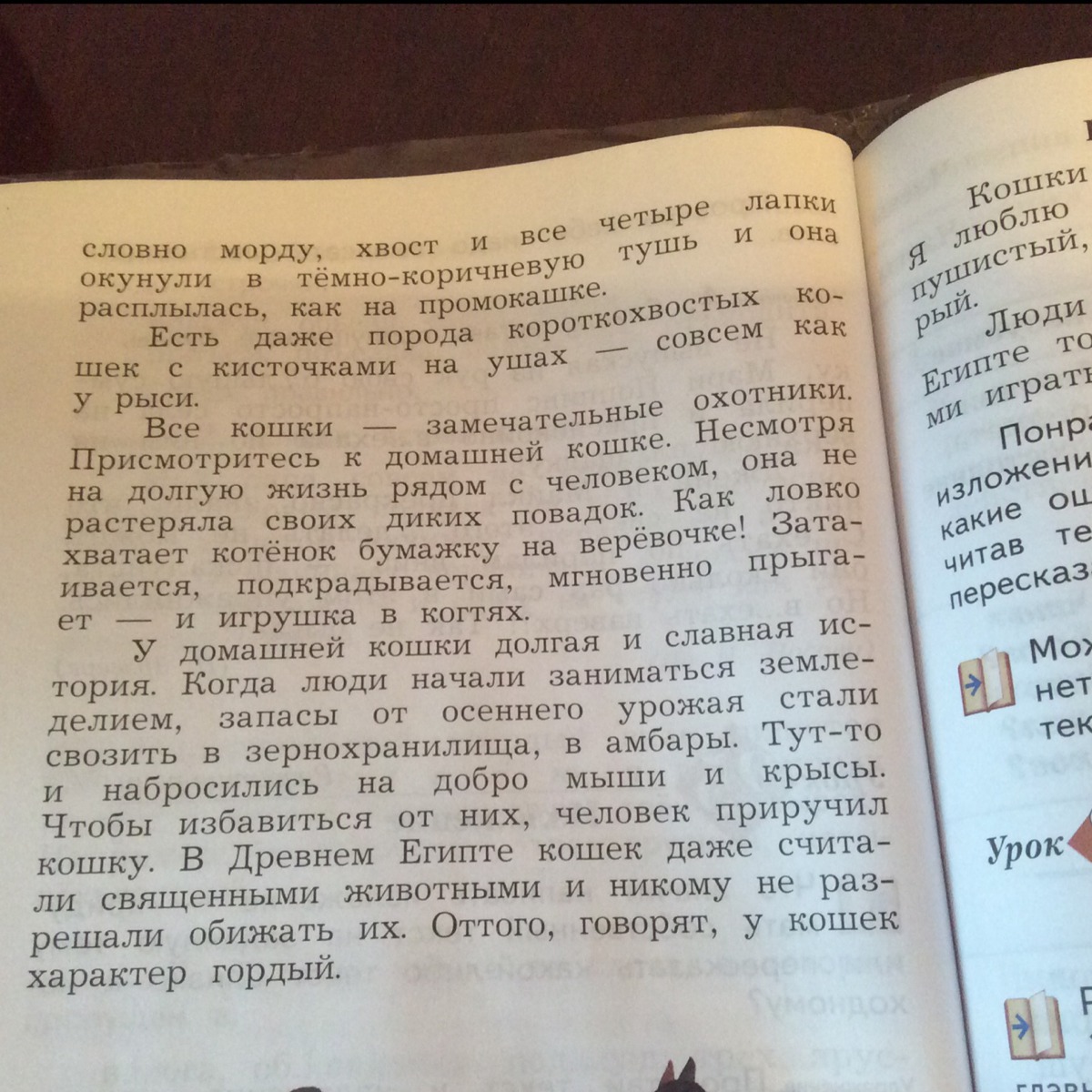 Написать изложение: домашние кошки все в общем похожи друг на друга, хотя люди и вывели много разных пород: сибирские - пушистые; ангорские - с очень тонкой пушистой шерстью; сиамские - розовато-палевые с голубыми глазами и с тёмными отметинами, словно морду, хвост и все четыре лапки окунули в тёмно-коричневую тушь и она расплылась, как на промокашке.