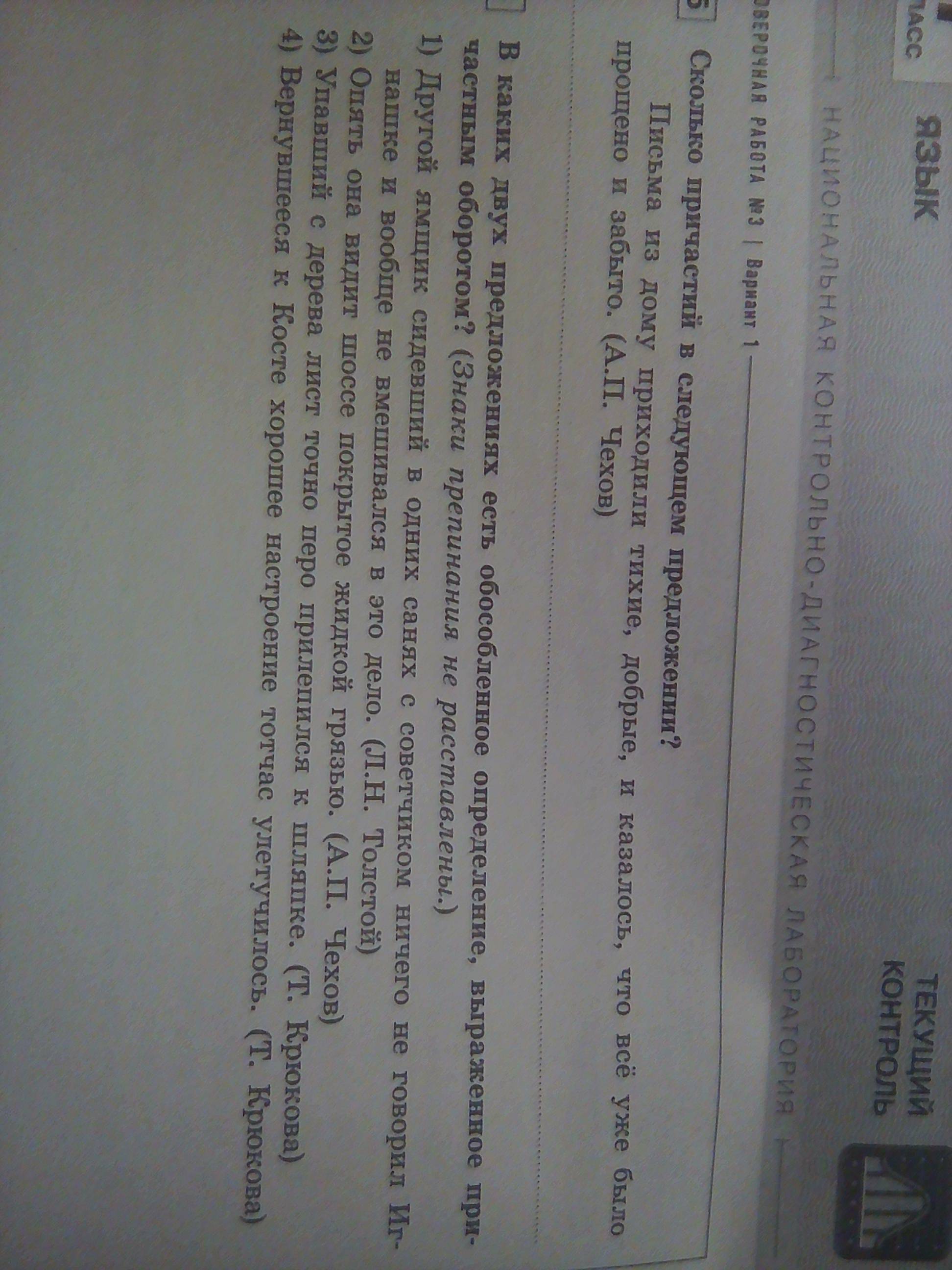 Ответ: 1. 2 причастия