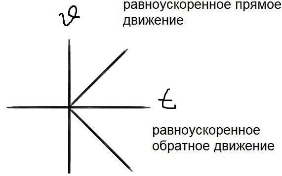 Дам 100 баллов тому, кто подробно объяснит. На уроке препод объяснял движение с постоянным ускорением, показал график. И вдруг внезапно нарисовал там кроме стандартной, на мой взгляд для таких случаев, ветви параболы вверх, еще одну вправо вверх и вправо вниз и вниз. Это подписал как ускоренное прямое, замедленное прямое, замедленное обратное, ускренное обратное, вот как я нарисовал на картинке. Так вот в чем вопрос: в чем заключается смысл обратного движения, чем оно отличается от прямого и почему график зависимости коорднаты от времени при постоянном ускорении ведет себя как обратная функция? (Обратное движение - обртная функция - одинаковые слова, но как они связаны по смыслу, мне неясно) в Интернете про обратное движение нет ровным счетом ничего. Желательно школьным языком