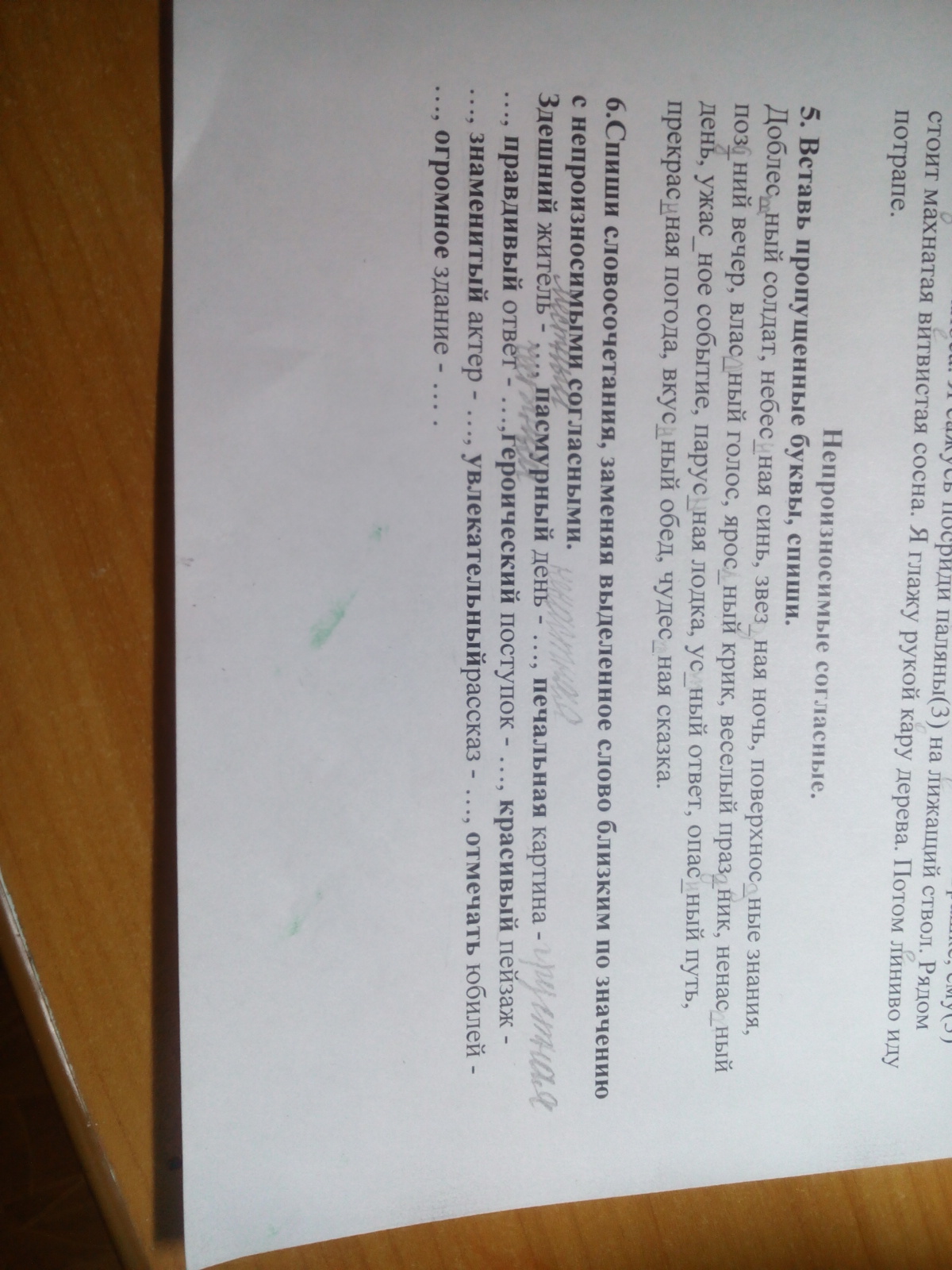 5. Доблестный солдат, небесная синь, звездная ночь, поверхностные знания, поздний вечер, властный голос, яростный крик, веселый праздник, ненастный день, ужасное событие, парусная лодка, устный ответ, опасный путь, прекрасная погода, вкусный обед, чудесная сказка.