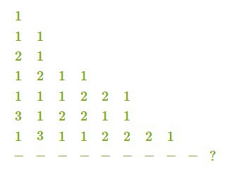 VIII. 1113213211 (одна единица, одна тройка, две единицы, три двойки, одна единица)