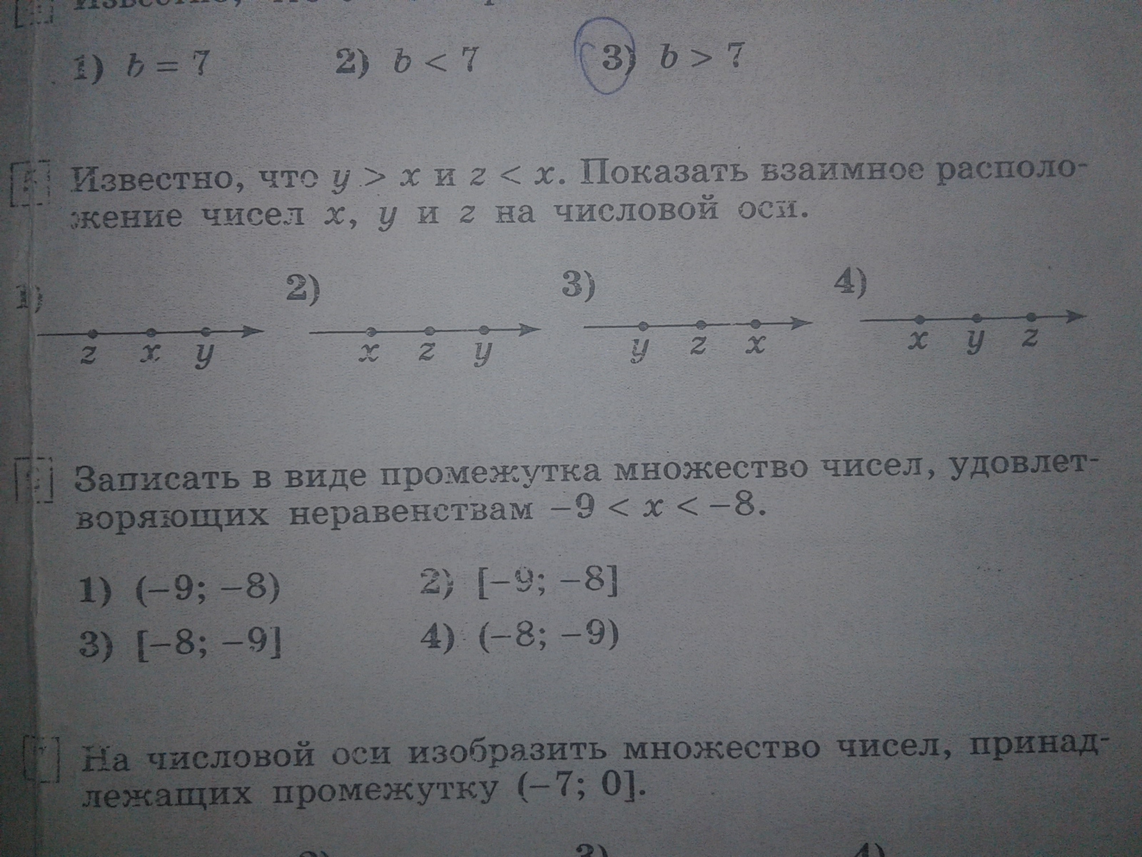 Известно, что y>x и z <x.Показать взаимно расположение чисел x, y и z на числовой оси