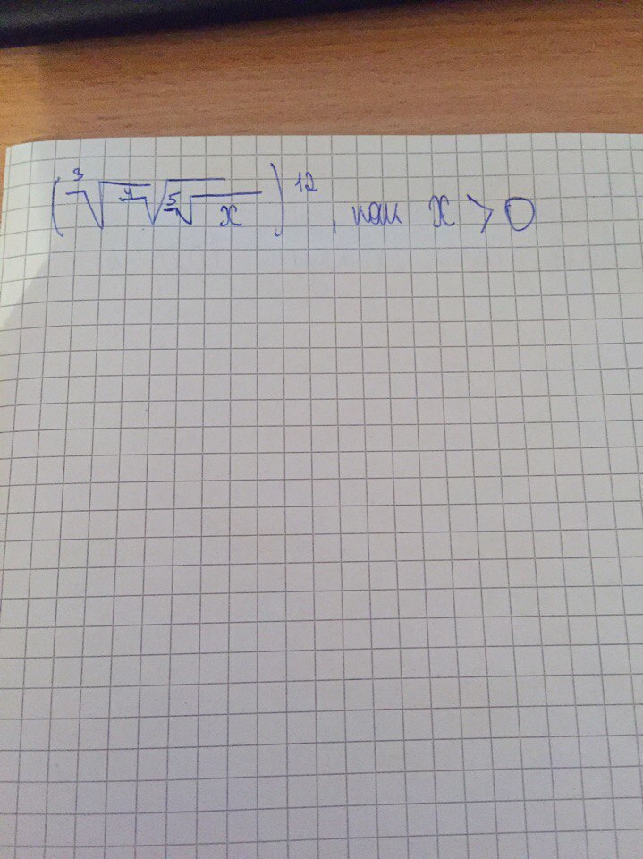 (∛⁴√⁵√х)¹²=((х¹/³)1/⁴)¹/⁵)¹²=(х¹/⁶⁰)¹²=х¹/⁵=⁵√х