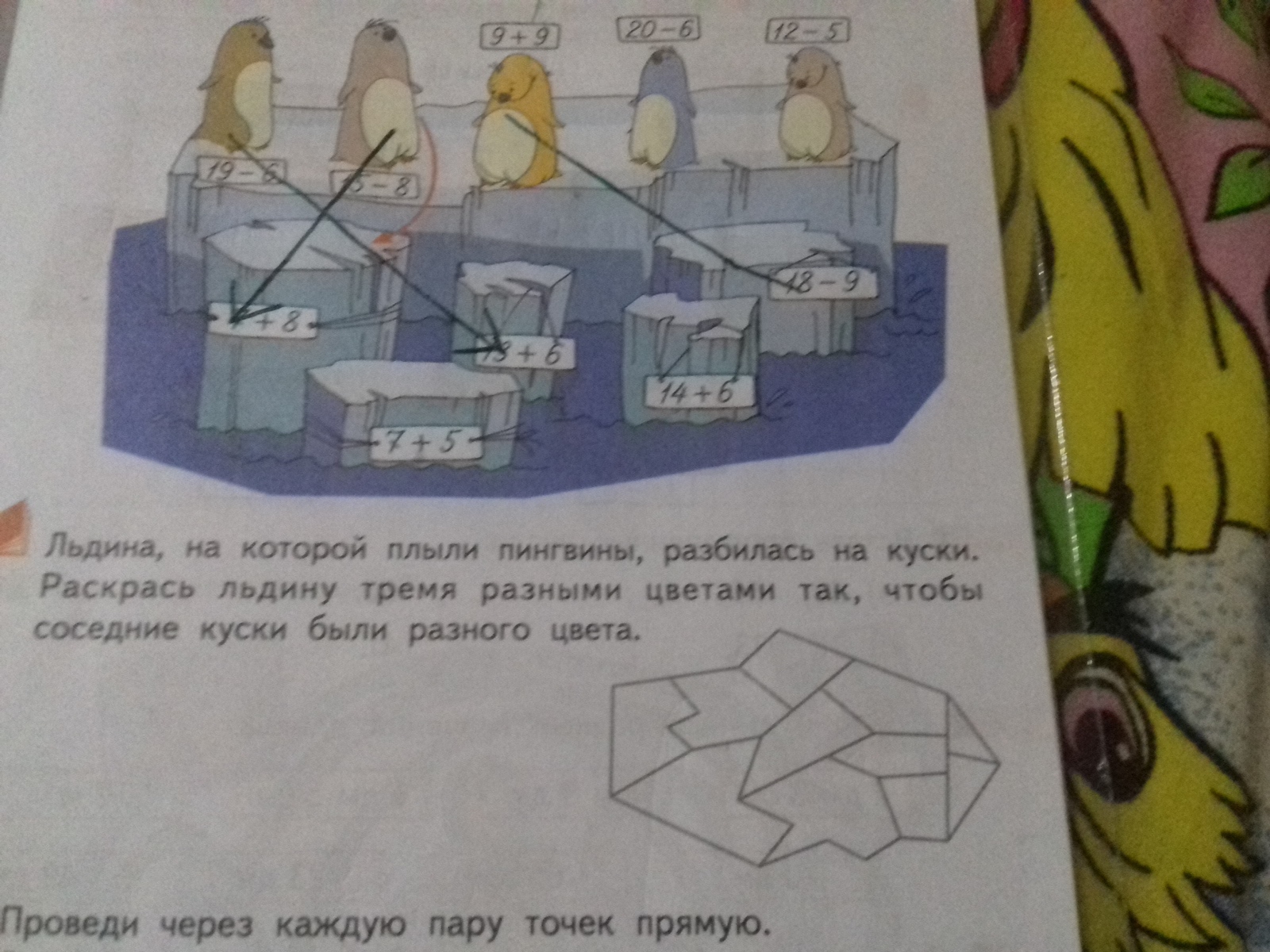 льдины на которой плыли пингвины разбилась на куски раскрась льдину тремя разными цветами так чтобы соседние куски были разного цвета