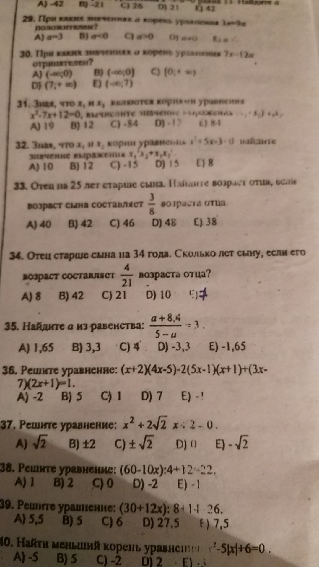 Пусть х -возраст сына, тогда х+34 - возраст отца, 4/21(х+34) - возраст сына (из условия), а это х.