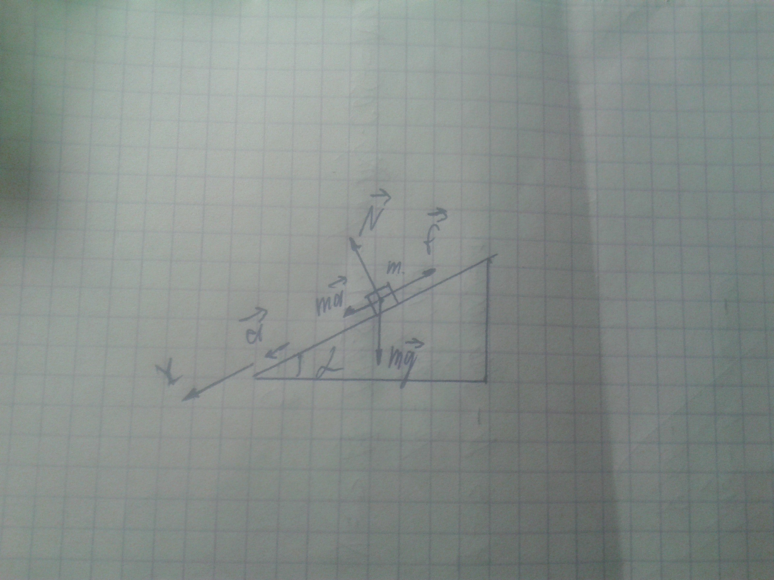 Ось X возьмём параллельно ей и направим вниз по наклонной плоскости.