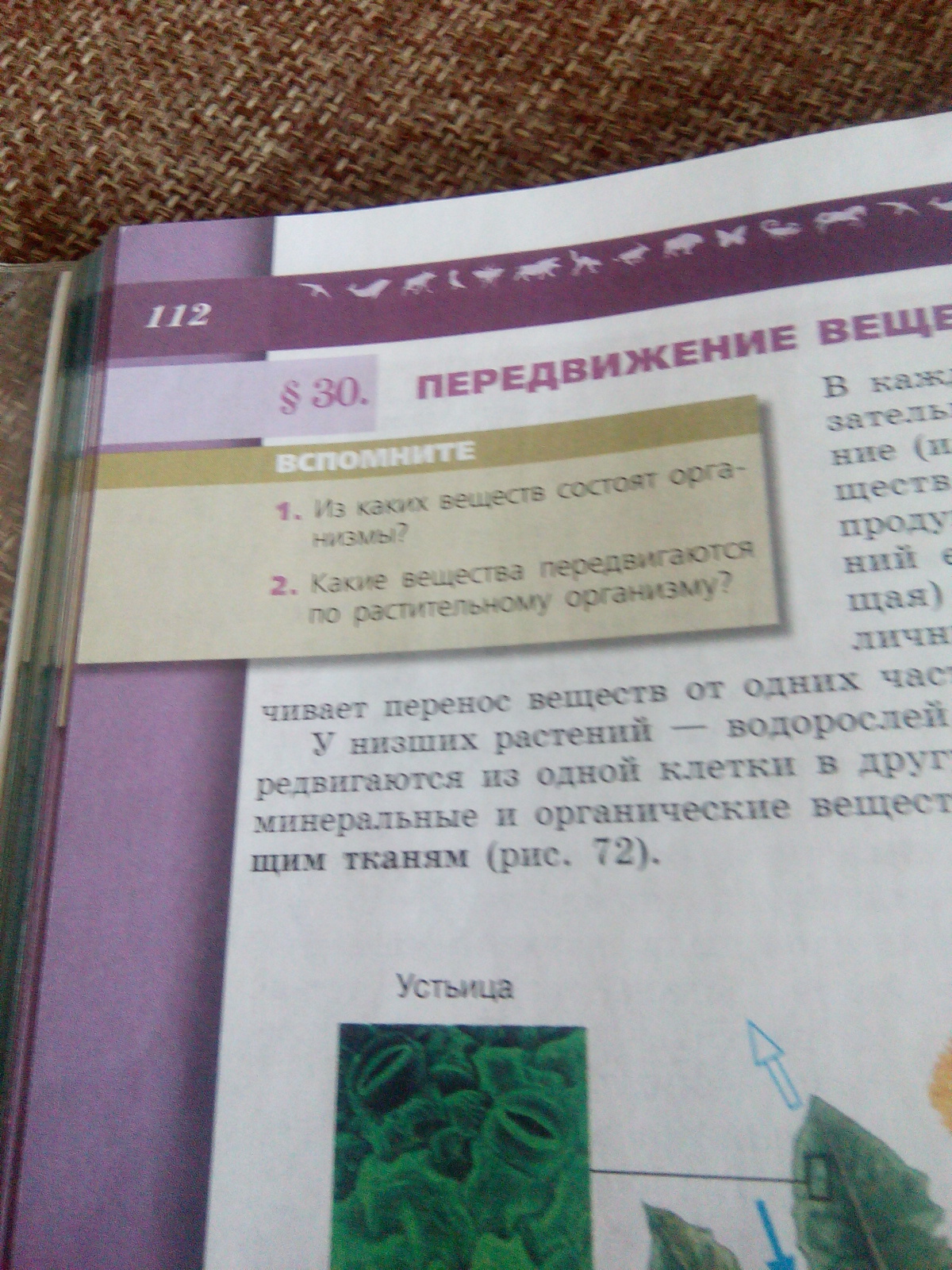 2) В каждом живом организме обязательно происходит передвижение различных веществ (питательных, кислорода, продуктов распада и др.)- У растений есть транспортная проводящая система. Она соединяет различные части растения и обеспечивает перенос веществ от одних частей к другим. У низших растений — водорослей — нет тканей и вещества передвигаются из одной клетки в другую. У высших растений вода, минеральные и органические вещества передвигаются по проводящим тканям