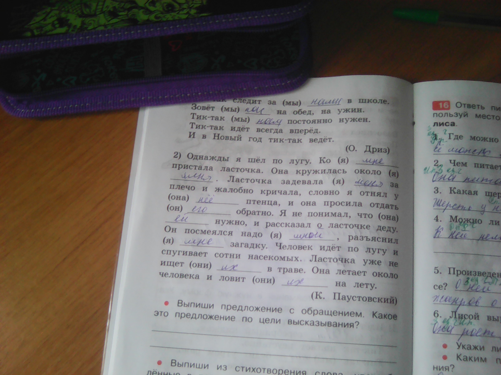 1)Выпиши предложение с обращением. Какое это предложение по цели высказывания? 2)Выпиши из стихотворения слова употребленные в переносном смысле. 3)Обведи образное сравнение. А еще дайте характеристику предложения Ты сделал уроки?