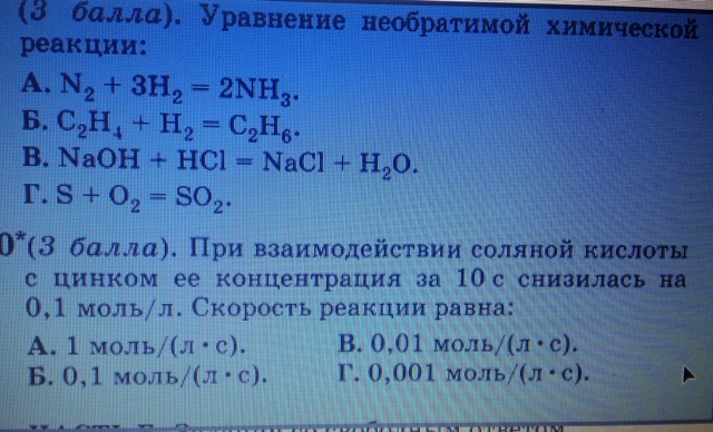 При взаимодействии соляной кислоты с цинком ее концентрация за 10 с снизилась на 0,1 мольл. Скорость реакции равна: - В