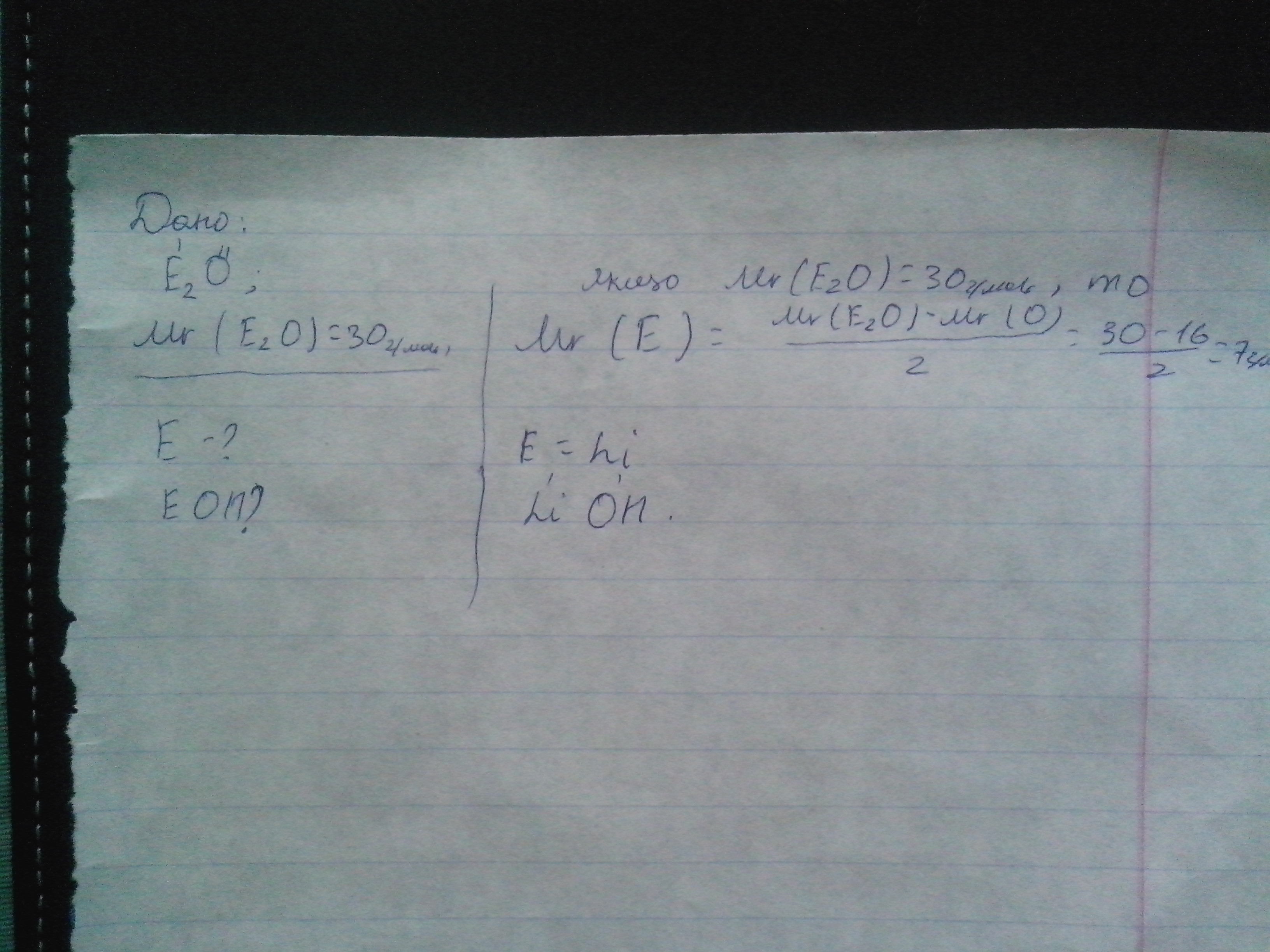 Оксид химического элемента 1 группы имеет молярную массу 30,назвать элемент и составить формулу его гидраксида