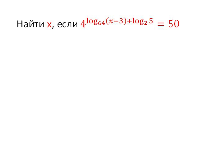 4^{log_{64}(x-3)+log_25}=50; ,; ; ; ODZ:; x textgreater  3\\4^{log_{4^3}(x-3)}cdot 4^{log_25}=50\\4^{frac{1}{3}log_4(x-3)}cdot 2^{2log_25}=50\\4^{log_4sqrt[3]{x-3}}cdot 2^{log_25^2}=50\\sqrt[3]{x-3}cdot 25=50\\sqrt[3]{x-3}=2\\x-3=2^3\\x=8+3\\x=11 textgreater  3\\Otvet:; ; x=11; .