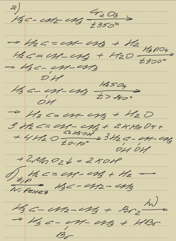а) пропан -> пропен -> пропанол-2 -> пропен -> пропандиол-1,2