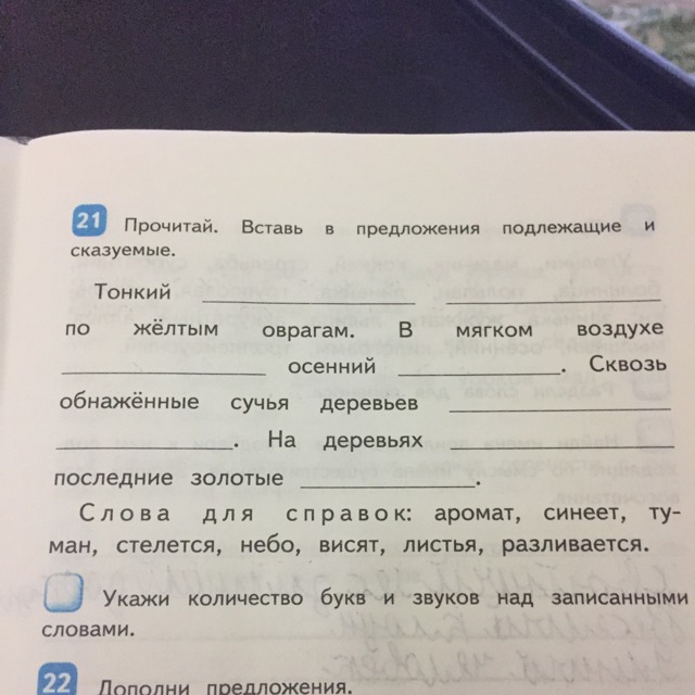 туман стелется, разливается осенний аромат, синеет небо, висят последние золотые листья