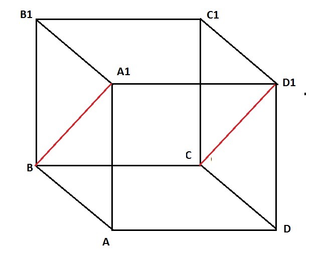 Расстоянием между двумя прямыми является перпендикуляр к ним обеим. В данном случае, так как эти прямые параллельны (они обе параллельны ребру АD), то таких расстояний много, самыми удобными являются диагонали А!В, и СD1. А они перпендикулярны обоим ребрам по теореме о трех перпендикулярах.