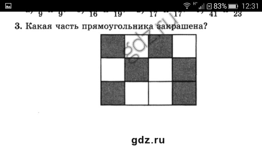 прямоугольник разделили на 12 частей, закрашено 6 , значит 6/12 , если сократить то ½
