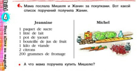 Джаннин1 пакетик сахара1 литр молока1 йогуртовый горшок1 бутылка сока1 кг мяса2 лимоновСыр 200 грамма