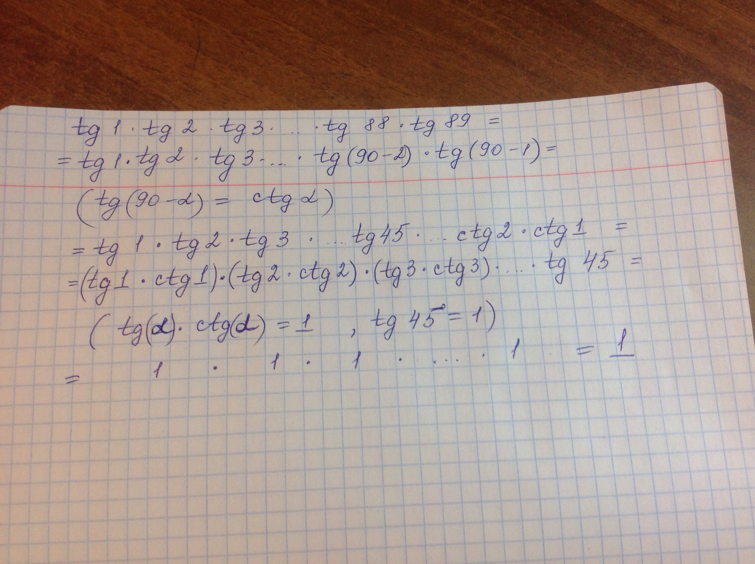 Т.е. составляем произведения первого и последнего, второго и предпоследнего и т.д. Остаётся лишь tg45=1