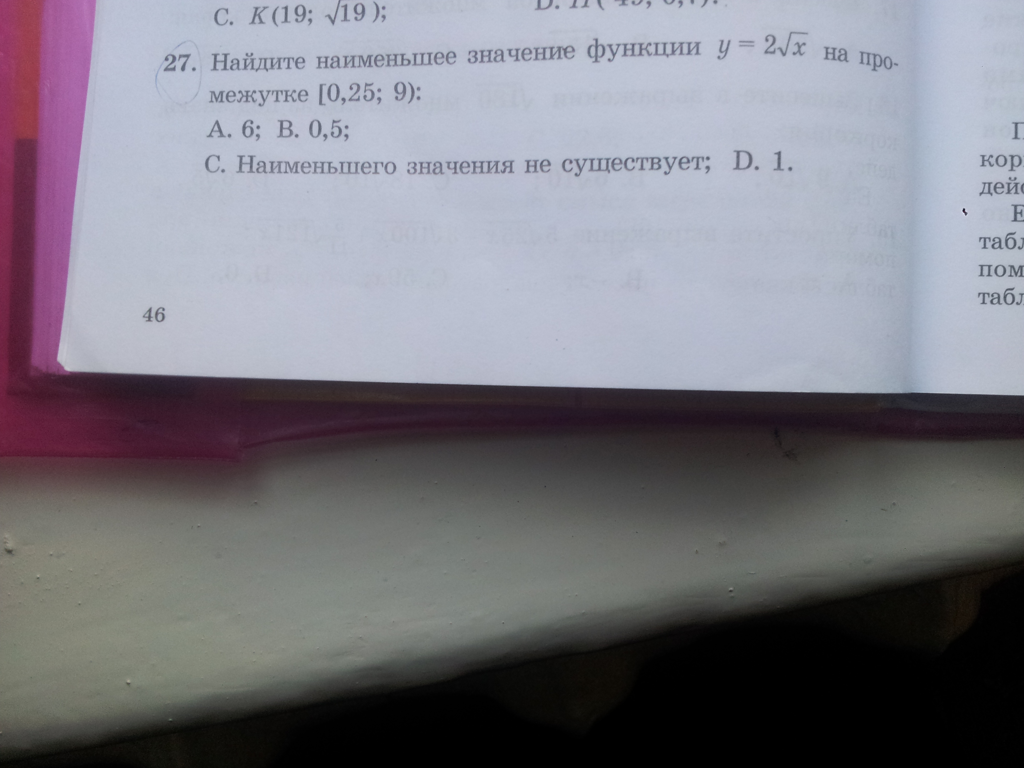 у = 2 * √0,25 = 2 * 0,5 = 1