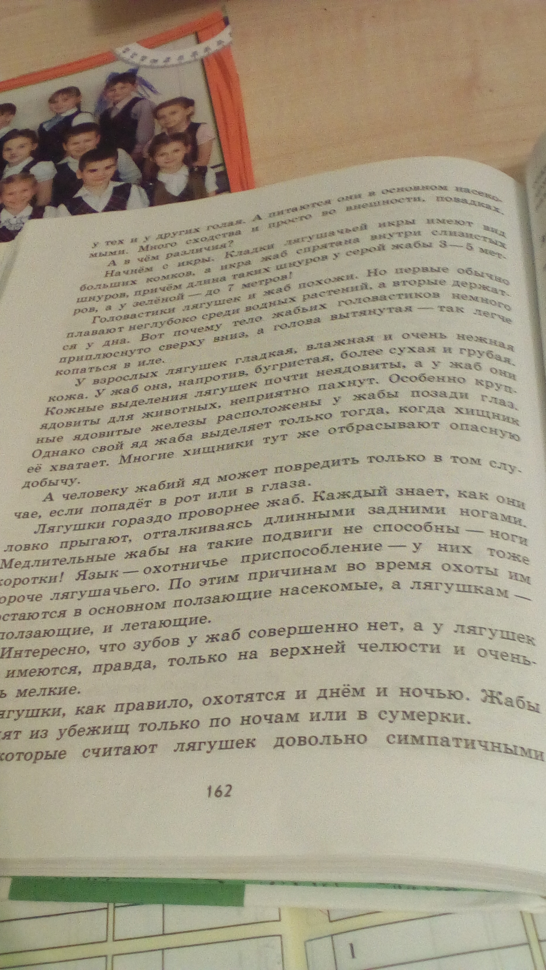 Там ещё на другой странице написано. Черты сходства отыскать нетрудно ;и те и другие часть времени проводат на суше , а часть в воде ,во всяком случае в воде размножаются. Развитие и тех и других начинается с икринки - из неё появляется головастик , который постепенно превращается во взрослую лягушку или жабу . Кожа и у тех и у других голая . А питаются они в основном насекомыми .