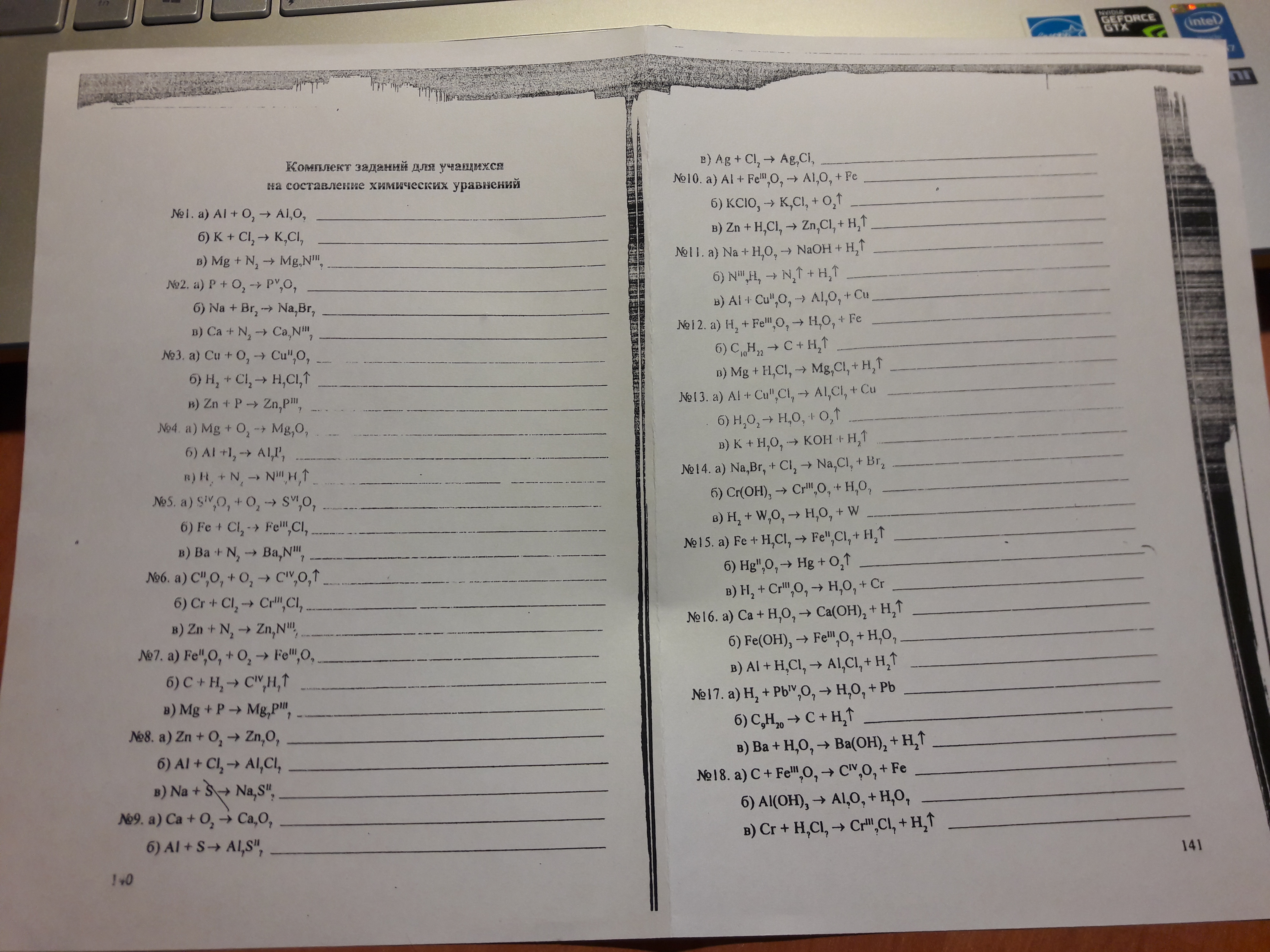 2Al+1,5O2=Al2O3, K+0,5Cl2=KCl, 3Mg+N2=Mg3N2, 2P+2,5O2=P2O5, Na+0,5Br2=NaBr, 3Ca+N2=Ca3N2, Cu+0,5O2=CuO,