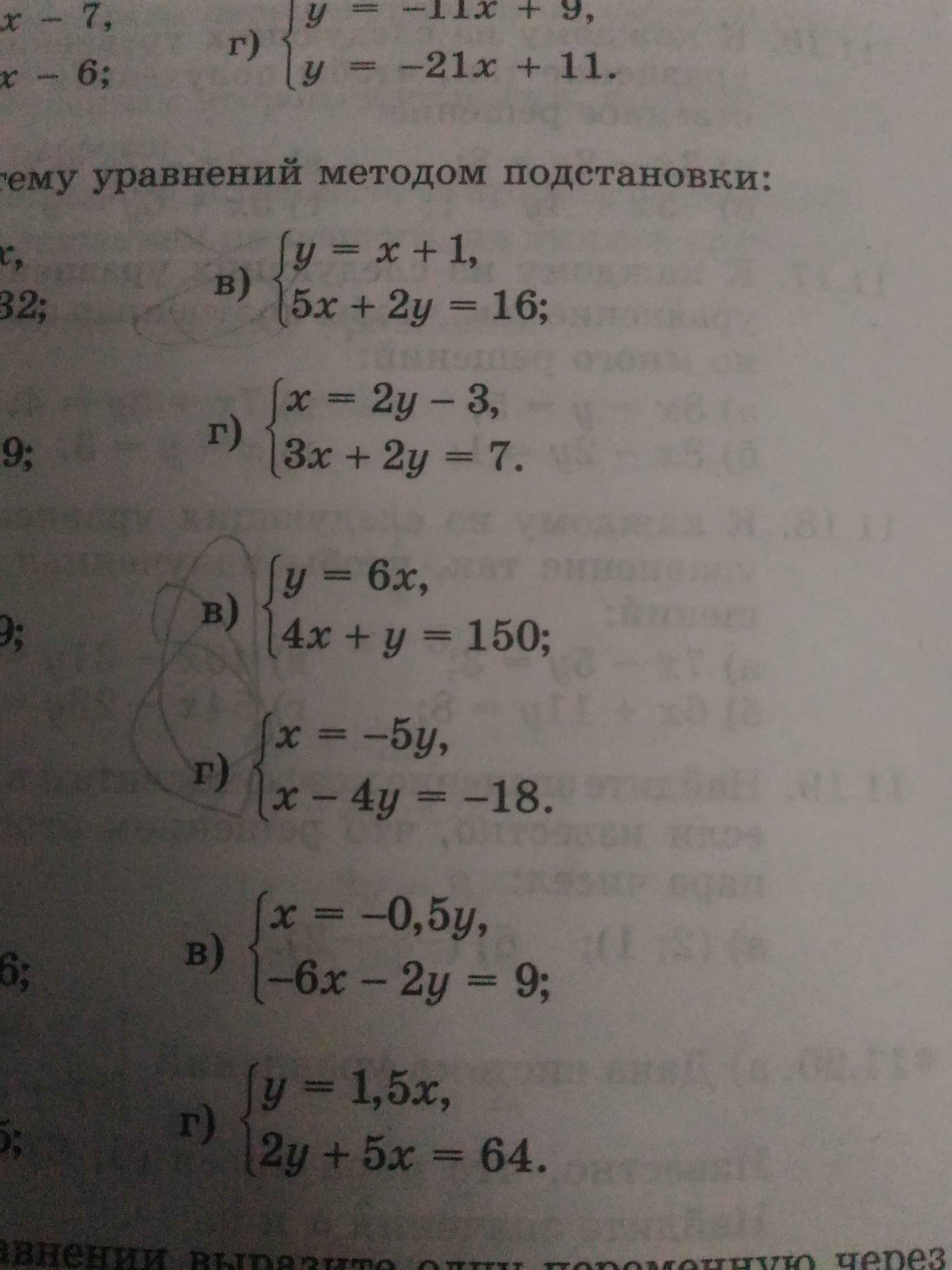 Решите систему уравнений методом подстановки. (12.2 в,г; 12.3 в,г;12,4 в,г)