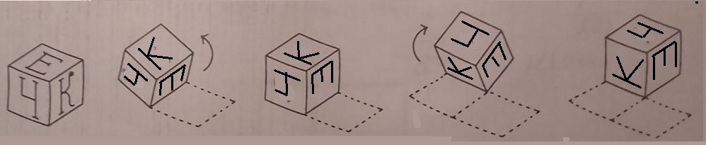 К решению задачи следует добавить условие, что эти три буквы написаны на противоположных гранях в том же положении.