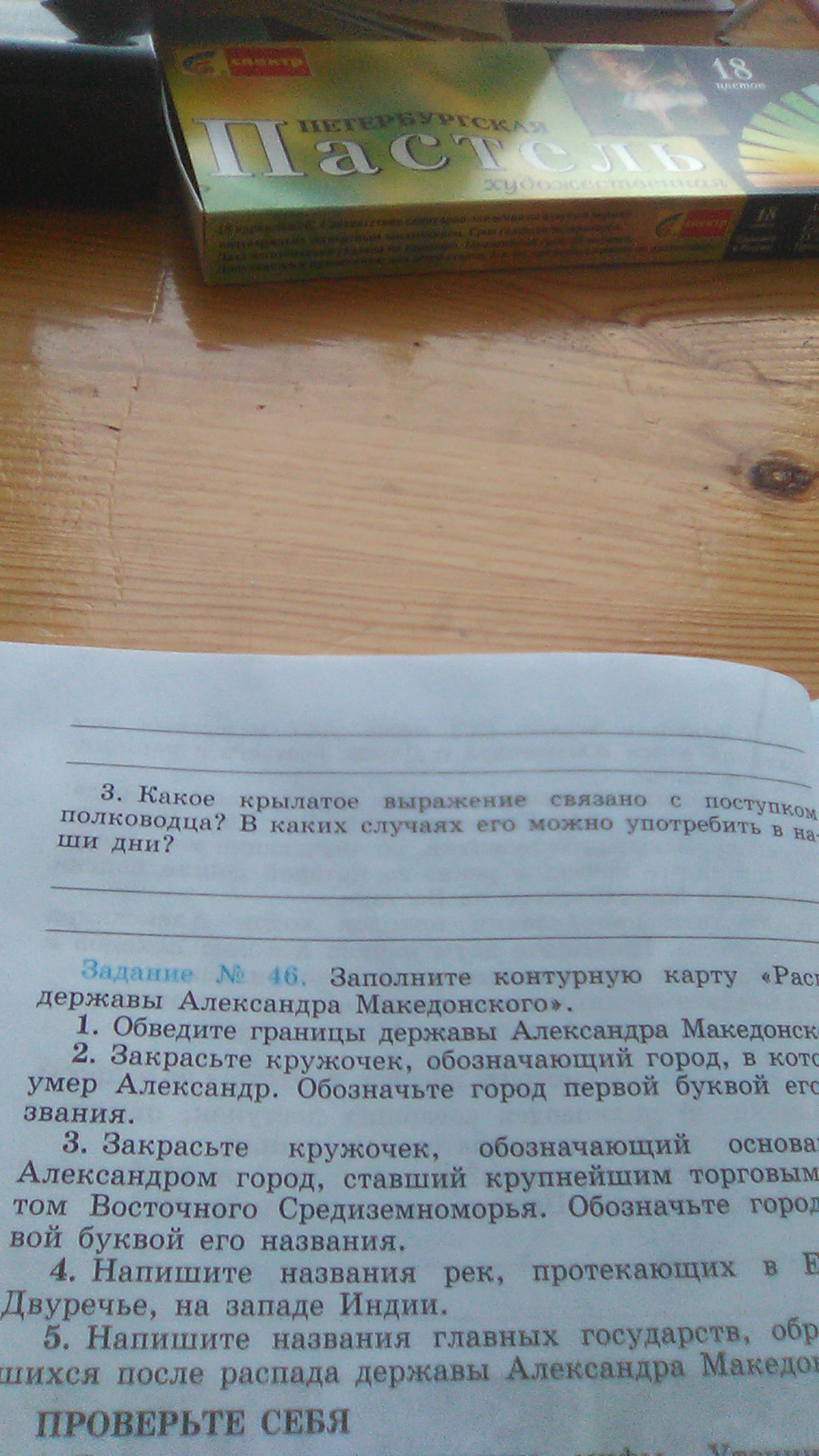 No 45. Рассмотрите рисунок и ответьте на вопросы. Знаменитый полководец совершил поступок, память о котором сохранилась в кралатом выражении.