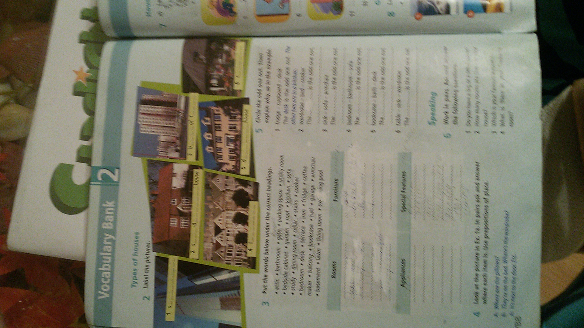 1.skyscraper 2. semi-detached 3. block of flats 4. townhouse 5. detached