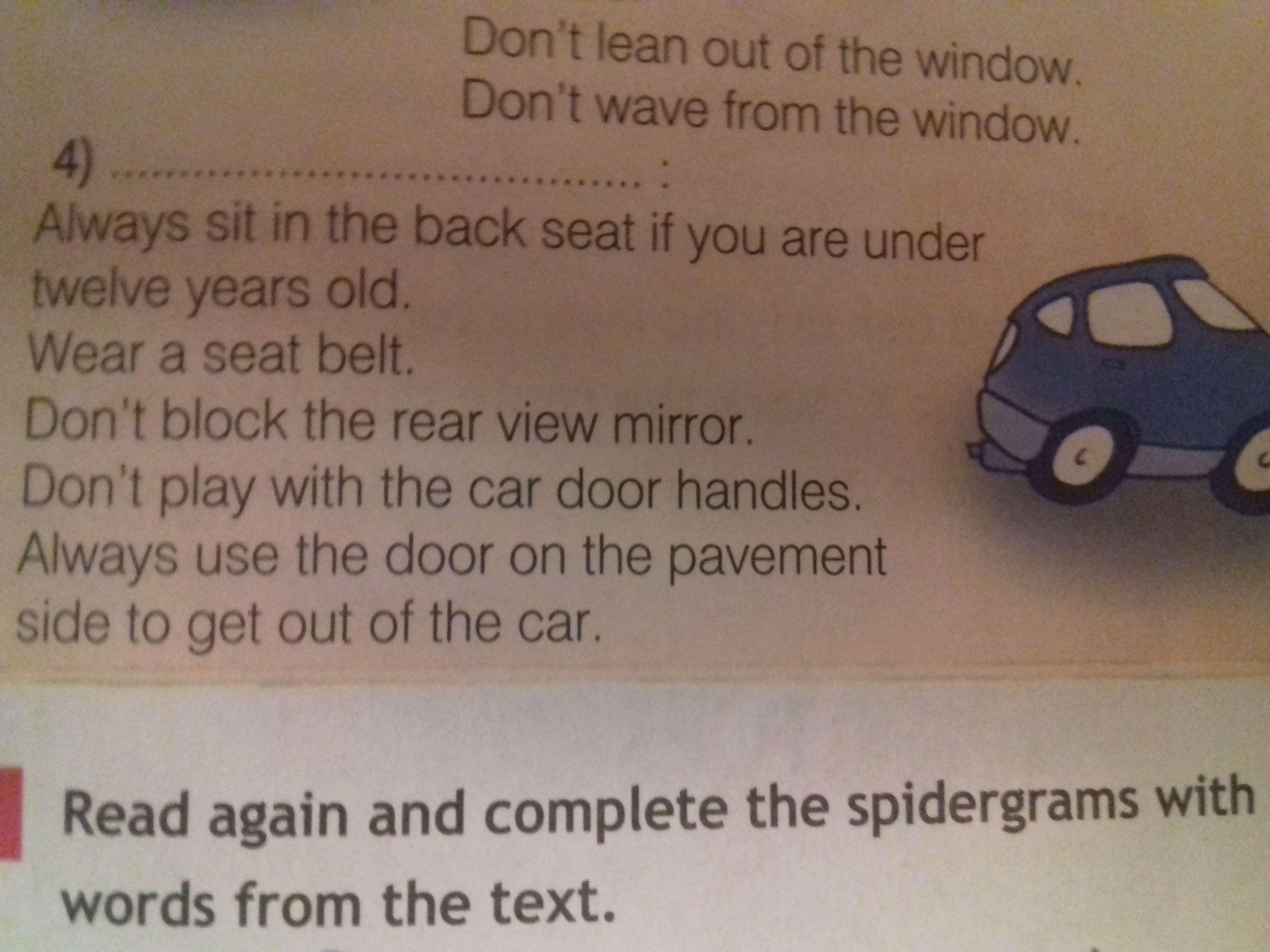 Always sit in the back seat if you're under twelve years old, wear a seat belt and use the door on the pavement side to get out of the car.