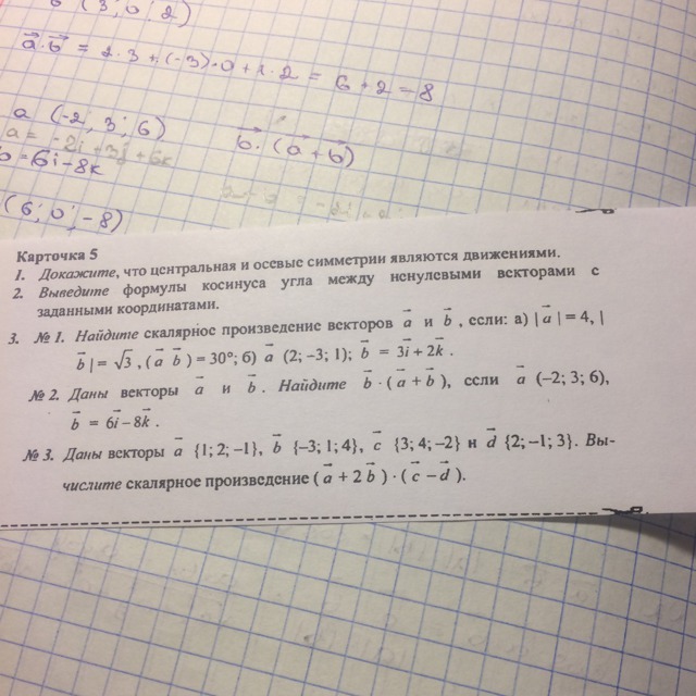 а + b = (-2+6 ; 3+0 ; 6-8) = (4 ; 3 ; -2)