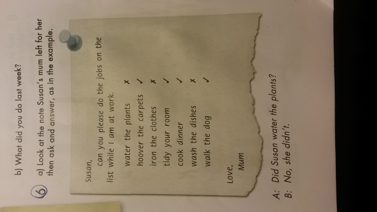 Susan hoovered the carpets, tidied her room, cooked dinner and walked the dog.