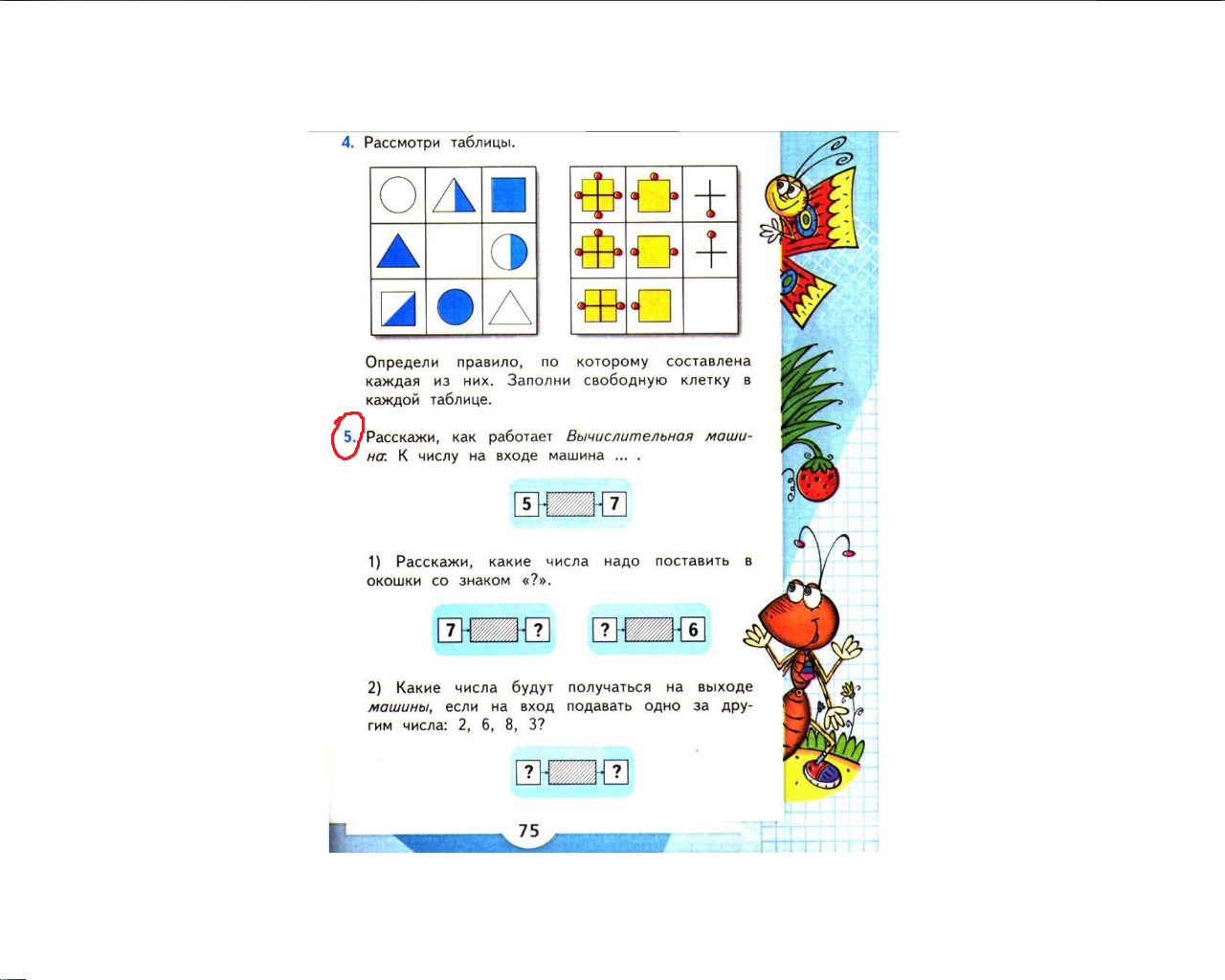 вычислительная машина к любому числи прибавляет 2, что и написано в примере 5 -(прямоугольник)- 7