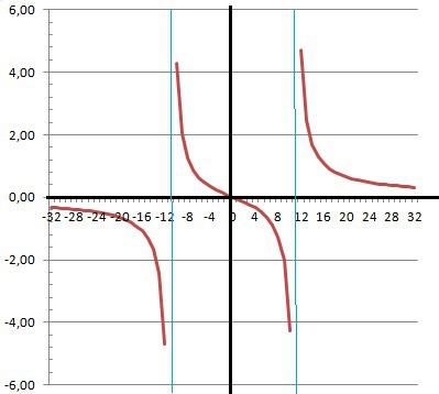 В знаменателе - (х-11)*(х+11)=0 - разрывы при Х= +/- 11.
