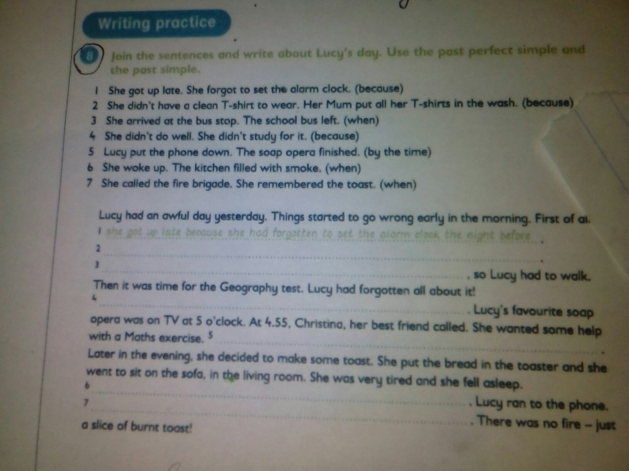 7. she called the fire brigade when she remembered the toast