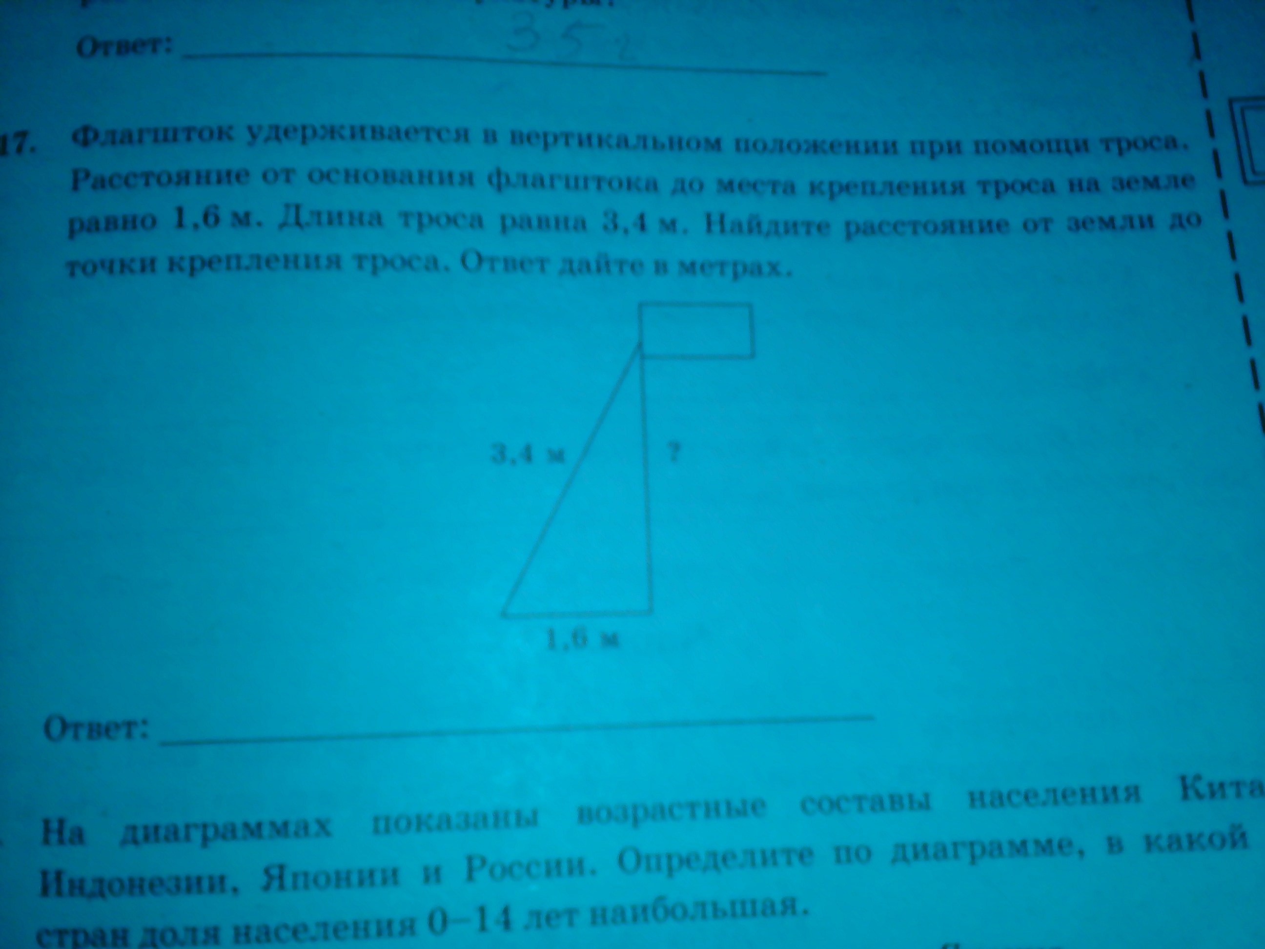 х =√(3,4²-1,6²)=√9=3м