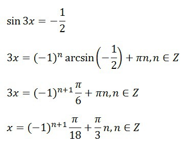 [tex]sin3x=-1/2 \ потом действуем по картинке ниже